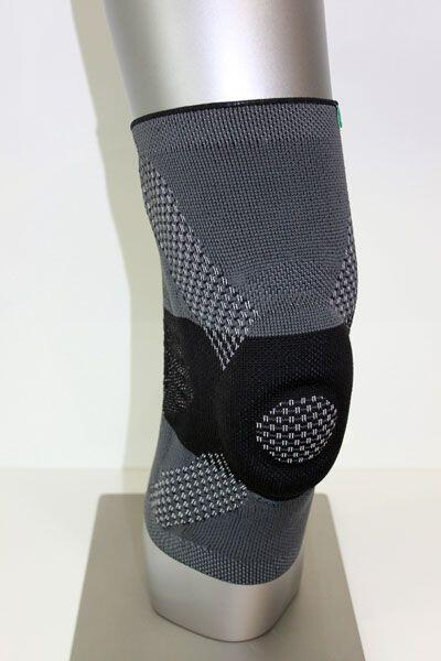 - Die GenuTrain® Kniebandage besteht aus einem des Kniegelenkes angepassten Gestrick mit einem eingearbeiteten, ringförmigen Funktionspolster, der Omega-Pelotte. Die Kniebandage wirkt schmerzlindernd, indem sie den therapeutischen Druck der Bandage von der Kniescheibe weg hin zu den Weichteilen im Kniebereich leitet.