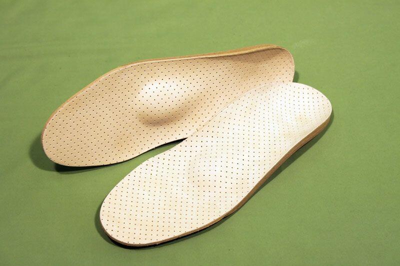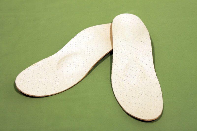 - Langsohlige Einlagen mit Lederdecke und Korkunterbau für eine feste stabile Abstützung der Fußgewölbe HMV PosNr. 08.03.02.0